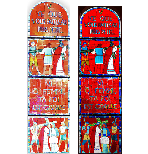 Avant et Après le restauration par Philippe Tisserand (vitrailliste de Metz)