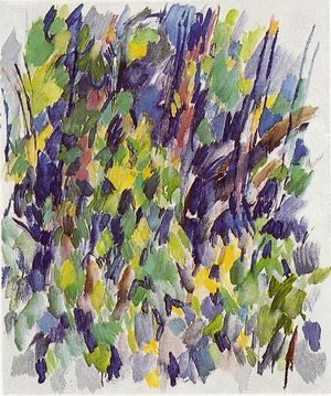 Quatre périodes : La première est dans la verticalité, le trait, l'angle aussi. On est dans le dur, la ligne épaisse, bien marquée. Le tronc de l'arbre est le motif quasi exclusif. J'y vois un tout jeune artiste, qui est homme, et qui se mesure avec les signes de la virilité, avec la brutalité de son sexe, avec la brutalité d'une émotion à dire et qui doit briser le carcan des pudeurs enseignées.